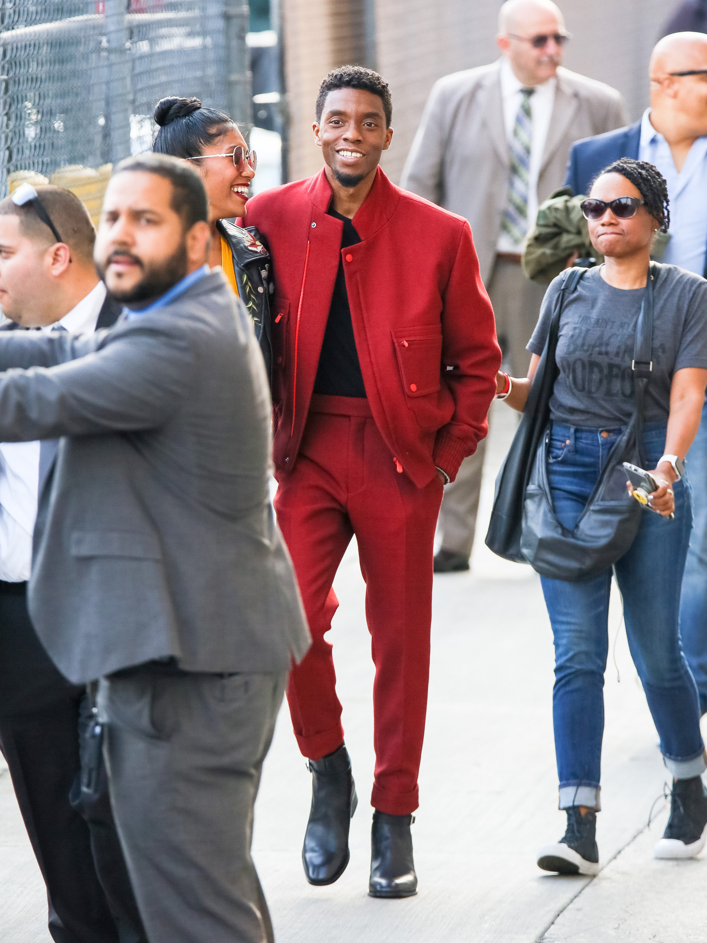 Has his Wakandan wealth improved his wardrobe? That’s our question to you guys when it comes to Chadwick Boseman, who made multiple outfit changes at “Jimmy Kimmel Live” according to these outside shots the paparazzi caught.