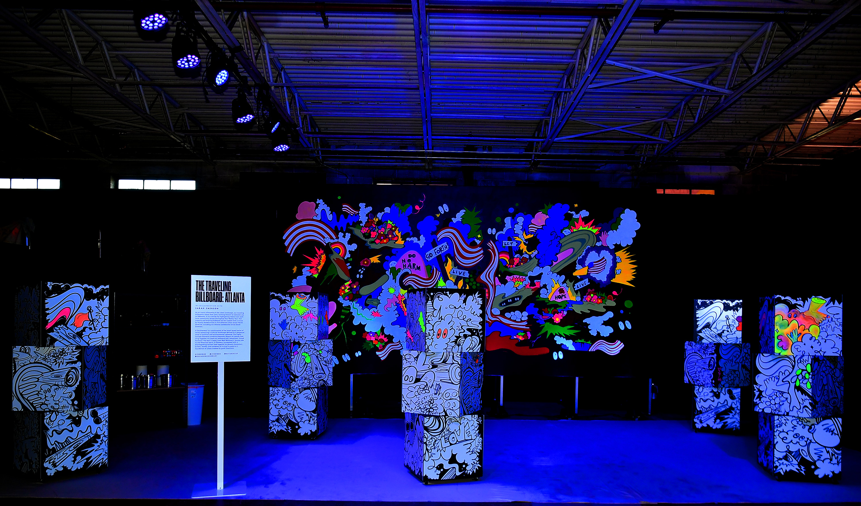 Another standout for sure was THE TRAVELING BILLBOARD ATLANTA In Collaboration with Sarah Emerson (@sarahemersonart). At each stop along the 2019 29Rooms Expand Your Reality Tour, guests are welcomed by a massive billboard treated with a mural by a locally-based artist who captures the iconic silhouette of the urban landscape. Sarah Emerson’s piece is a bold depiction of Atlanta called “O Smithereens” (our favorite term)—so of course, we were impressed.