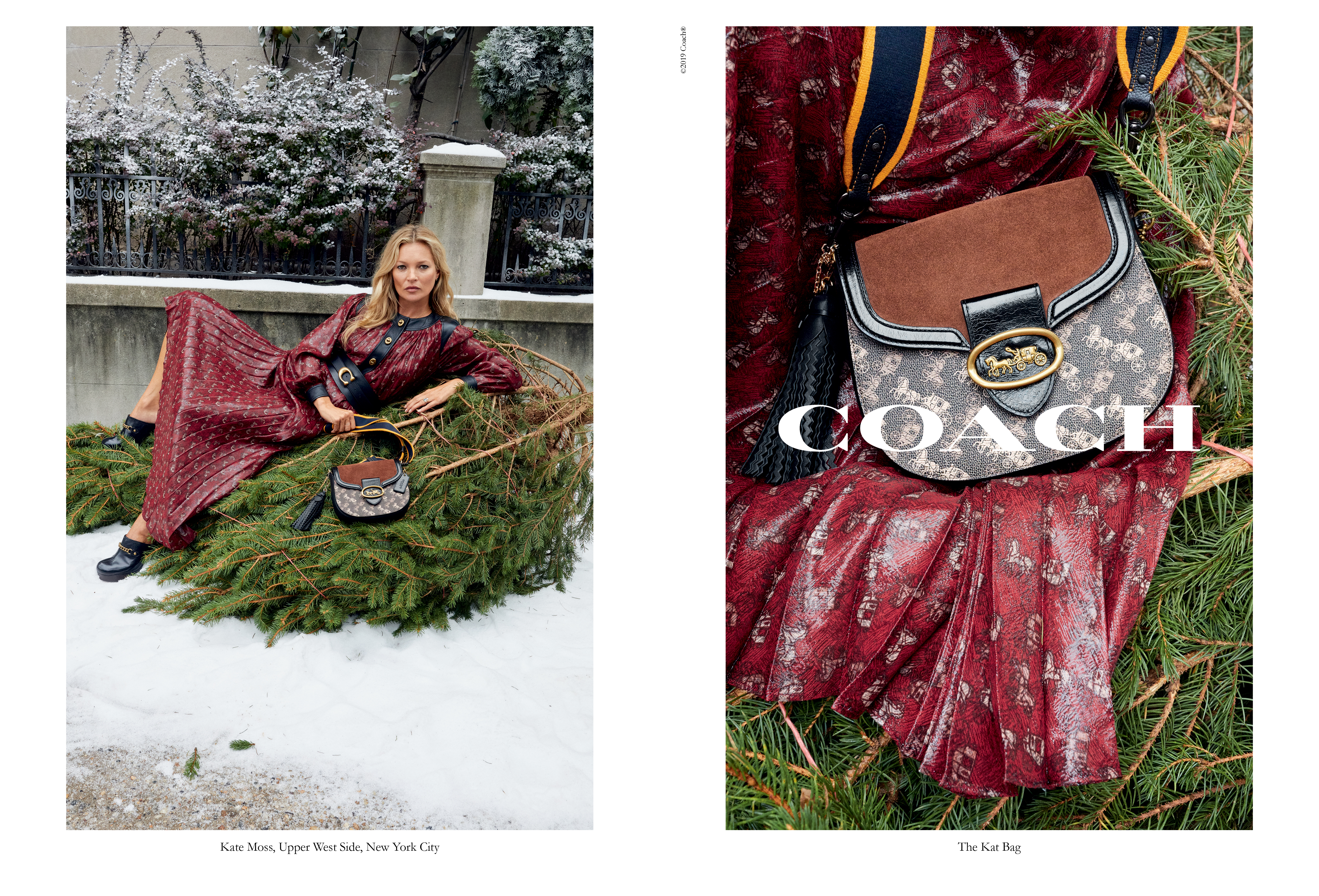 The campaign also introduces the house’s new Horse and Carriage collection. Seen on Kate Moss and a new version of the Kat Saddle Bag, the collection reimagines Coach’s iconic Horse and Carriage motif as a cool, colorful pattern on bags and ready-to-wear. First introduced in the 1950s, the Horse and Carriage is a symbol of Coach’s legacy of leathercraft and New York heritage, and the house’s first-ever code.