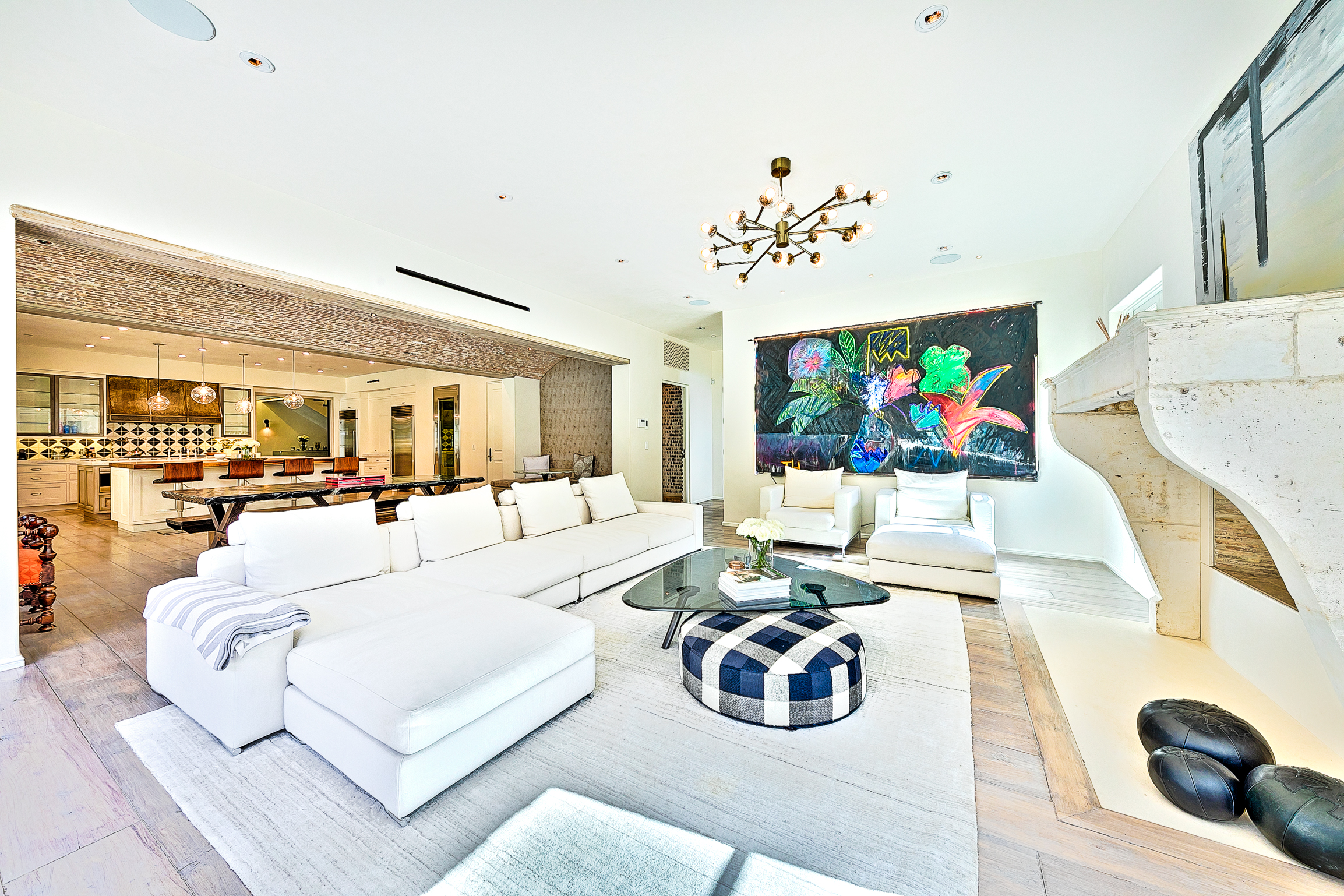 Love the floors in this living area, as well as the access to outdoors and incredible lighting.