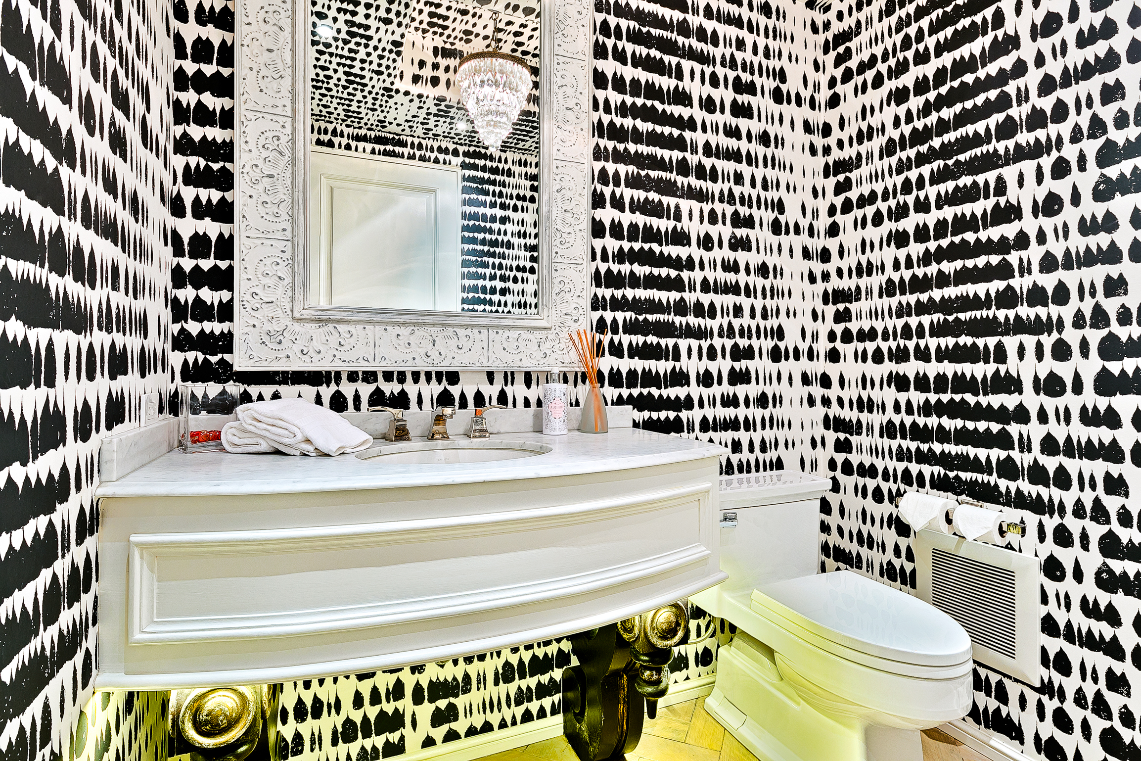 This bathroom is pretty bold. Could you see Prince Harry sitting on that throne? We’re not too sure about that one.