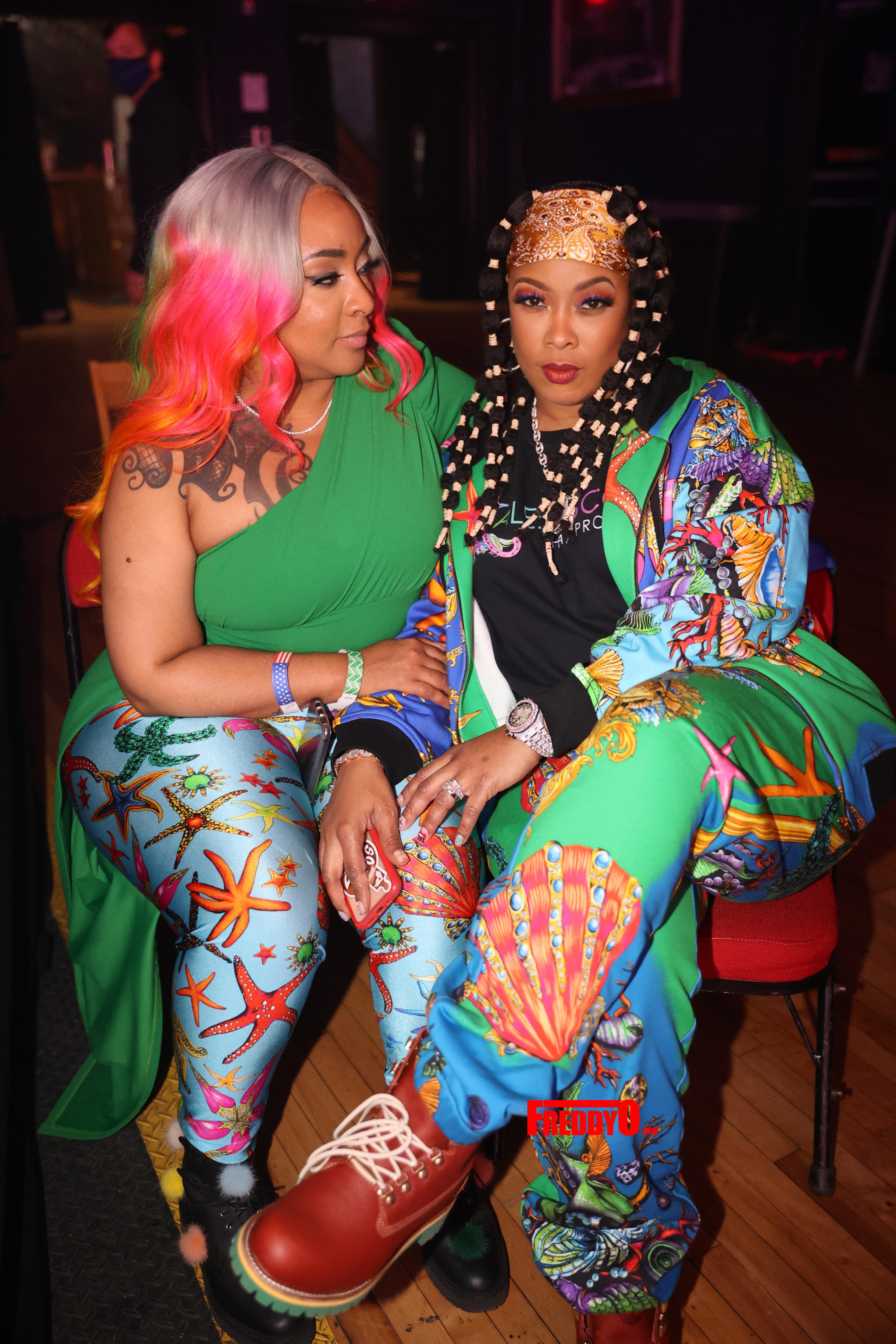 Not only did the ladies come to entertain but they came to slay as well! Both groups complemented each other in all black with Xscape members in ensembles styled by No IG Jeremy. Kandi wore an Alex Perry Official catsuit, Tiny Harris wore a Shane Justin top, LaTocha wore a look by Rosa Chá and Tamika Scott popped out in a feather top by Akira.