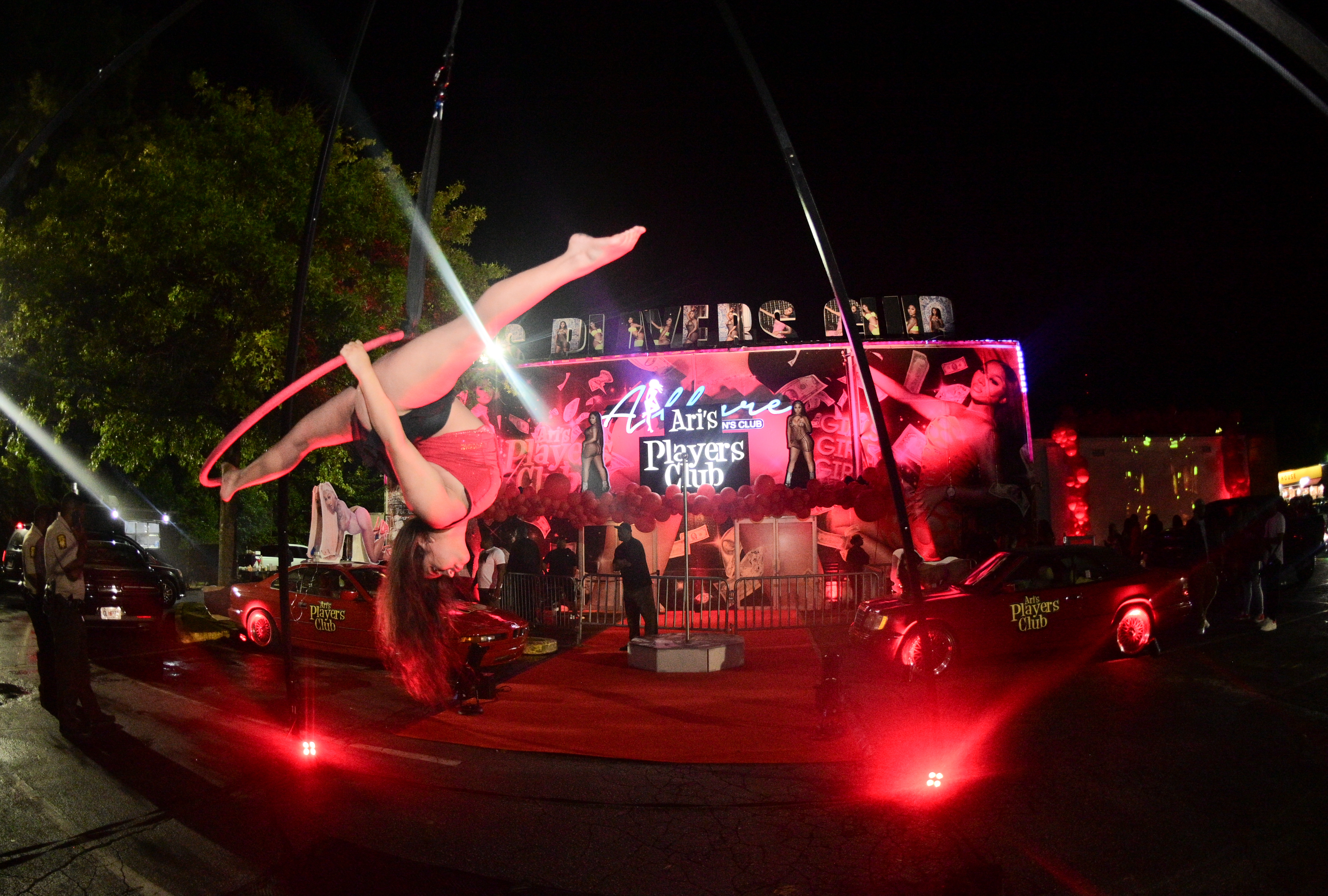 The lavish bash was thrown by extravagant eventress Hannah Kang who transformed Allure into Ari’s very own p-pop palace that paid homage to “Players Club” with retro vehicles, classic neon strip club signs and Cirque du Soleil-esque dancers outside the venue.
