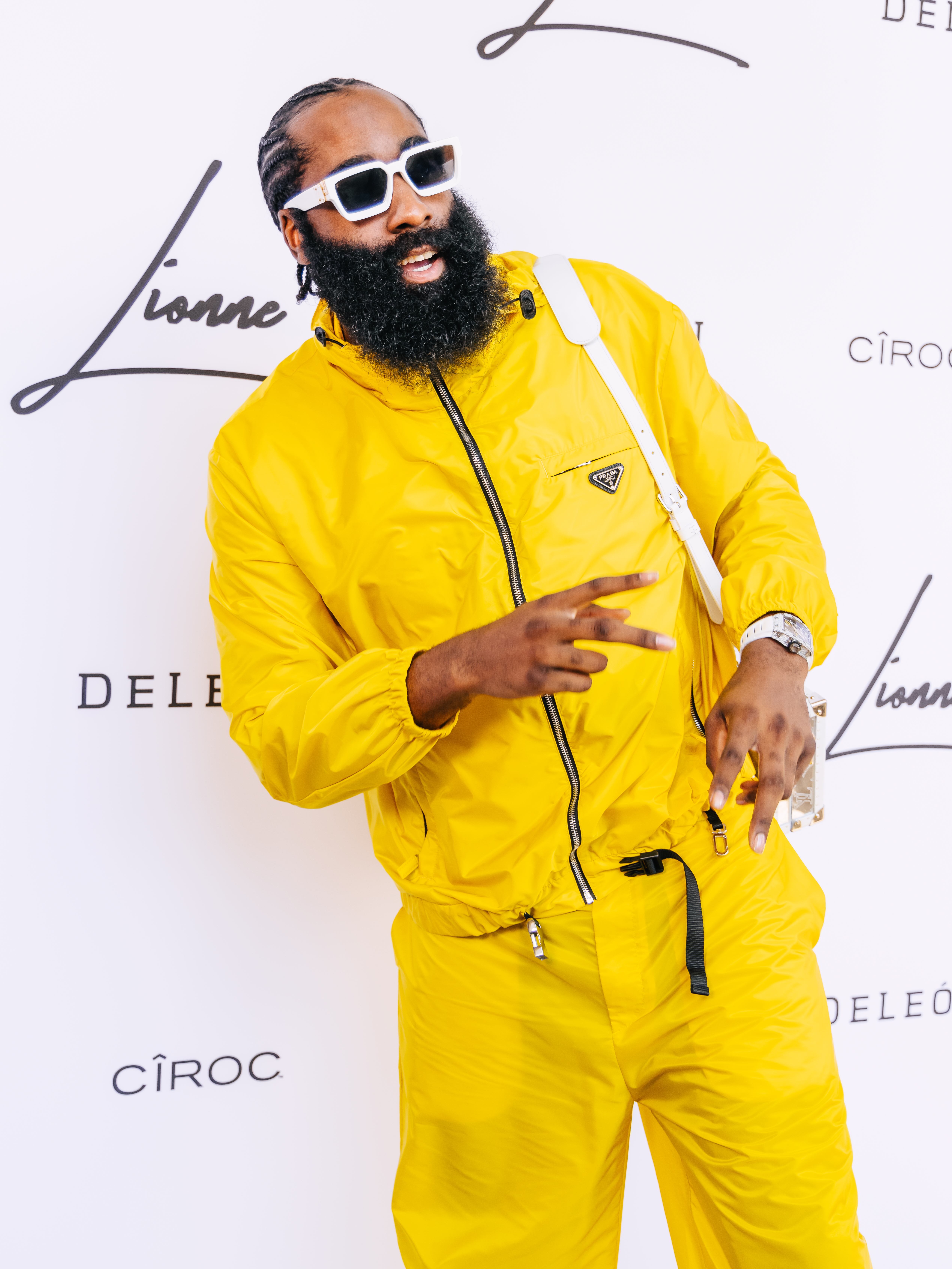 and a yellow Prada-suited James Harden.