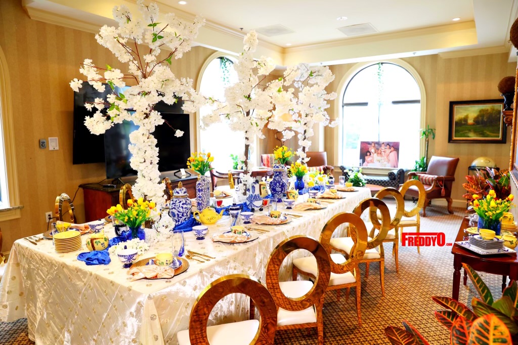 At Traci’s celebration service Ms. Braxton and the rest of the family were joined by several green-wearing guests. The venue for the event was also decorated in a similar color palette.