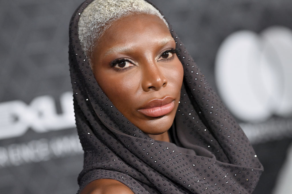 Michaela Coel’s custom coal-colored Maximilian Davis for Ferragamo look featured a hood and beading…