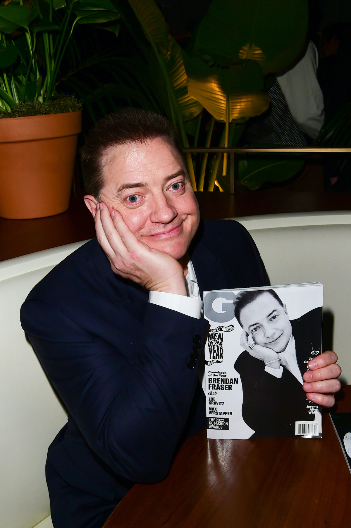 Brendan Fraser posed with his cover in hand.