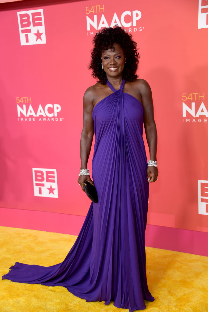 while Viola Davis sported a stylish and simplistic purple look.