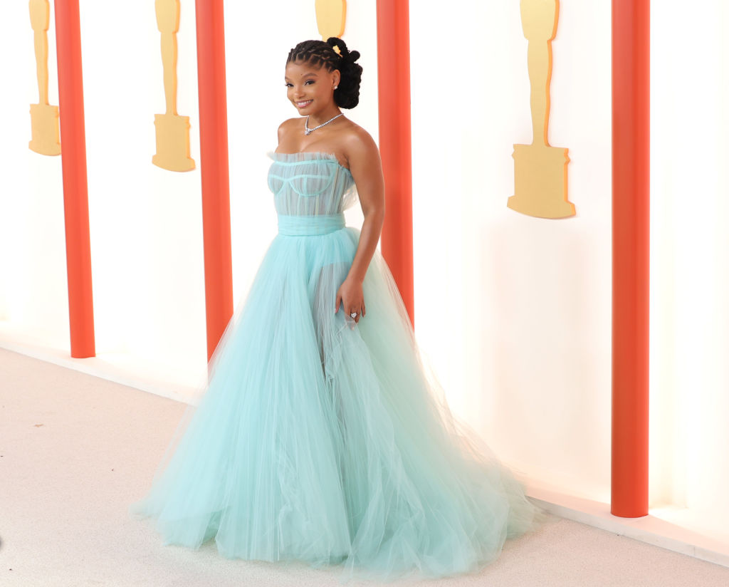 Also spotted was Halle Bailey who wore an aquamarine Dolce And Gabbana gown complete with a sheer tulle skirt.
