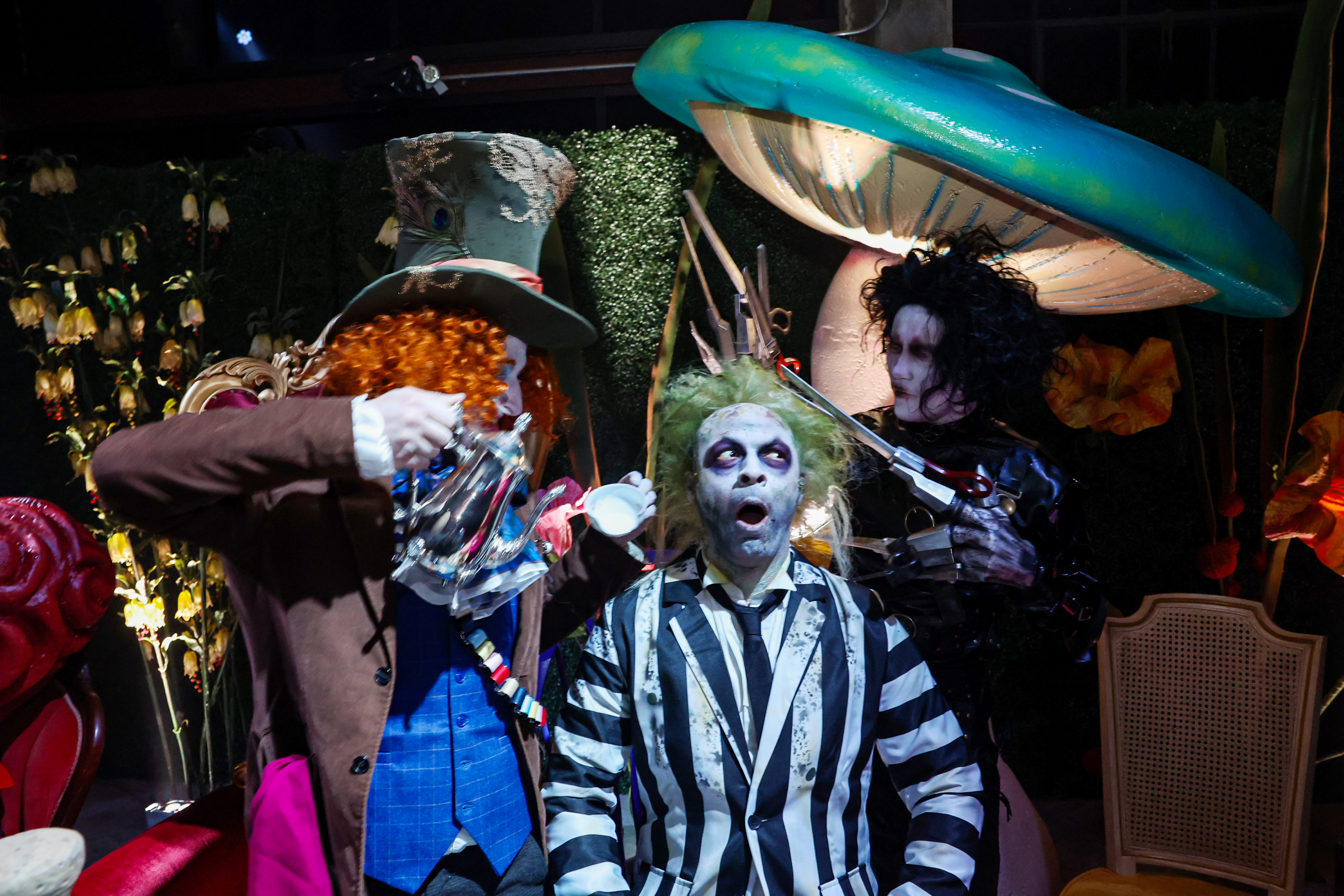To play into the theme, the hot girl dressed as the talking flower from Alice in Wonderland, another Tim Burton classic, and even posed with the movie’s Queen of Hearts.