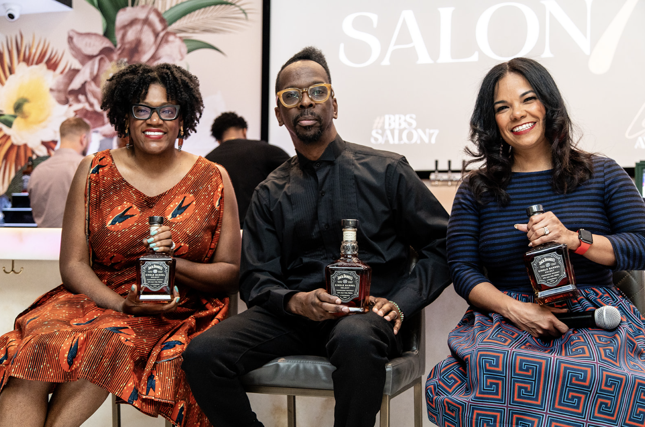For this year’s Salon 7 stop in Atlanta, Black Bourbon Society founder Samara B. Davis welcomed guests as they enjoyed a panel discussion, signature cocktails, and whiskey tasting (single and double barrel) led by Byron Copeland, Jack Daniels’ Whiskey Innovation and Maturation Manager.