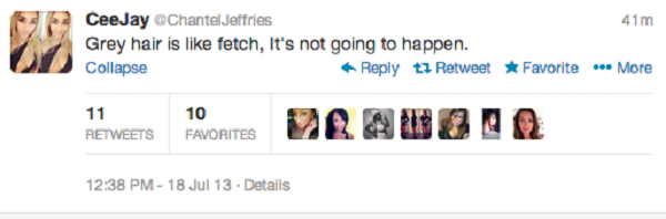 Earlier today Chantel took note of Robyn’s new hair color and decided to put her 140 characters to use…