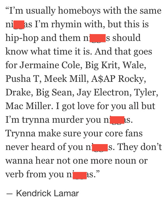 Kendrick showed respect to some vets like Jay Z, Nas, Andre 3000, but to his peers, he took no prisoners and certainly didn’t bite his tongue.