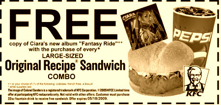 Buy KFC chicken sammich, get the new Ciara album FREE?