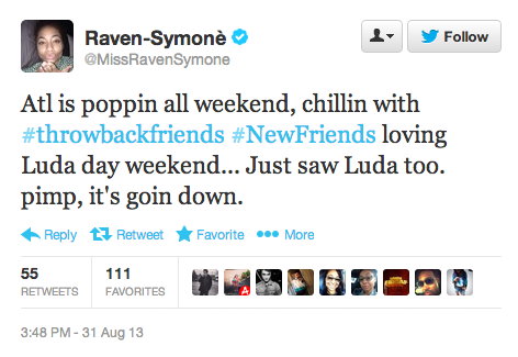 Raven tweeted and instagrammed about her Ludaday weekend adventure. BOSSIP was also on hand for most of the Ludaday events and we couldn’t help but notice that Raven barely budged without her boo by her side. Should these two just go ahead and wed? We heard they’re already living together in Raven’s $11K per month luxury crib in NYC…