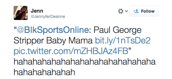 When news broke that Pacers baller Paul George had knocked up a pole girl, most people were shocked, some were disgusted, one person in particular was dying from uncontrollable laughter, his ex, Jennyfer.