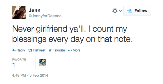 The fact that Jenn couldn’t help herself from LMFAO’ing at her former flame’s current misfortune kinda suggests that things must have ended badly.