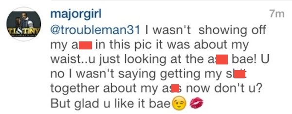 One thing is for sure, whether they are having difficulty in their relationship or not, Tip does NOT want the mother of his children posting pics of her chubby cheeks on Instagram.