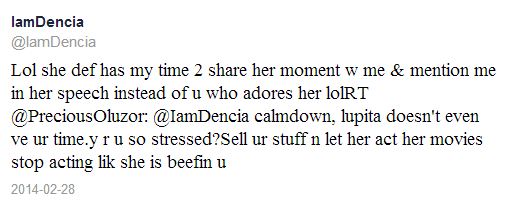 Dencia later took to her Twitter account to blast Lupita: