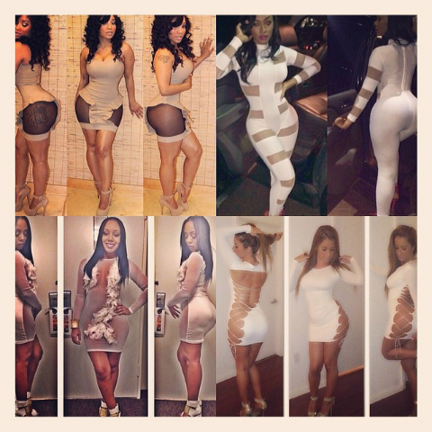 We’re not exactly sure when (or WHY?) struggly IG outfits started poppin’ but they’ve quickly become go-to apparel for attention-thirsty birds who want to be nekkid without actually being nekkid. The nekkid-er, the better? If you didn’t know, that’s the new fame-chaser/IG model/hoodrat motto in 2014.