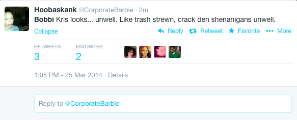 Bobbi Kristina has been in the news recently for how worried she’s making all of us. She’s terribly skinny and we all know what happened with her mother. Now, things are just getting worse. Today a pic cropped up on Twitter of her looking even worse than before. And on top of that, she’s wearing mismatched shoes! Goodness.