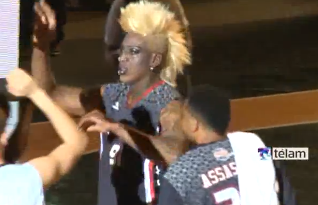 Suspect: Dennis Rodman Rocks A Full Face Of Make-Up And Blonde Mohawk During Basketball Game In Argentina! [Video]