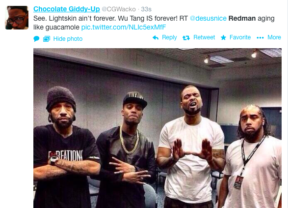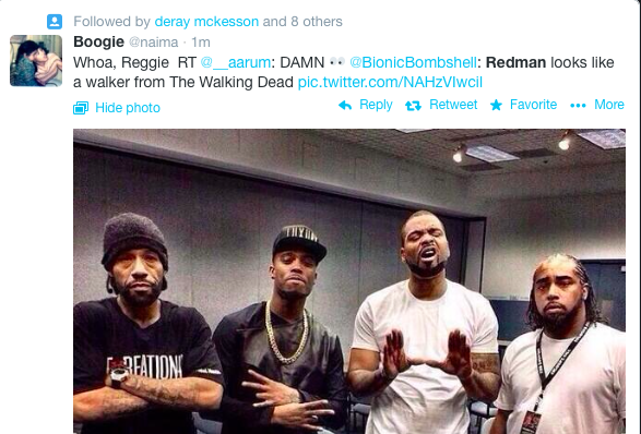 Redman is one of the most beloved rappers of all time. He’s also known for his love of the green stuff. But this picture can’t possibly be the results of too much smoking, can it? Because Red looks like he’s been going through it. Check him out on the left there looking like Father Time gave him the Stone Cold Stunner. Of course, Twitter went ham sammich with the jokes. You know the drill.