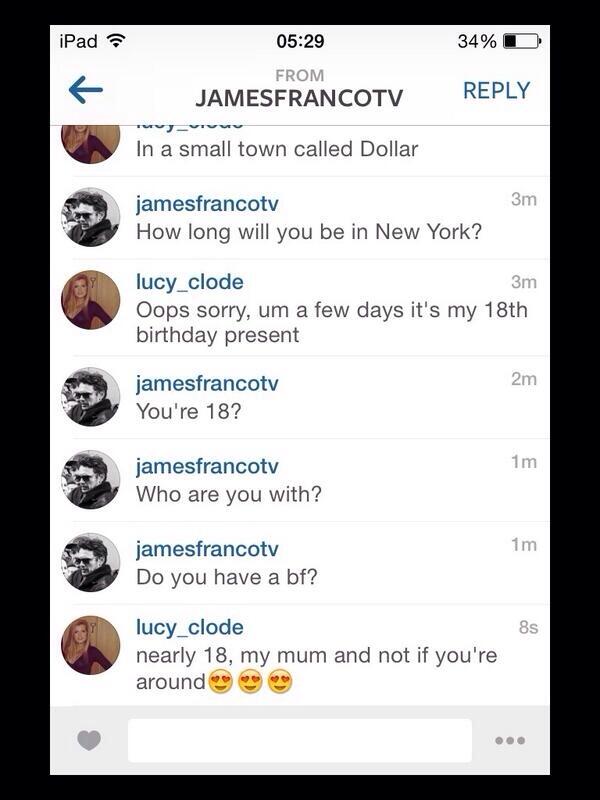 Here’s a crazy story about it almost happening as a teenager from Scotland named Lucy Clode got an invitation from James Franco, 35, to do just that.