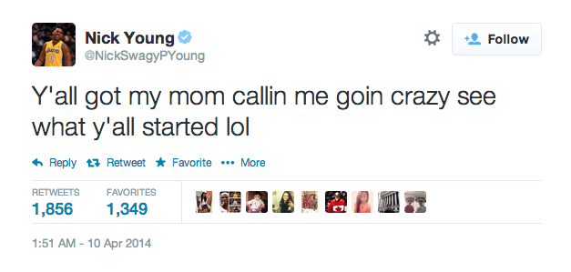 This guy isn’t nearly “Swaggy” enough to be Nick Young. He’s not even rockin’ leather jogging pants!