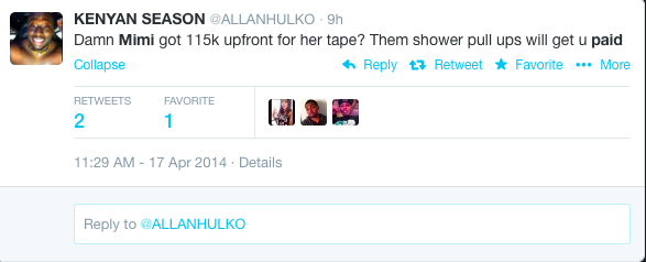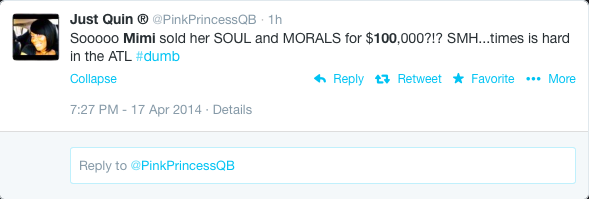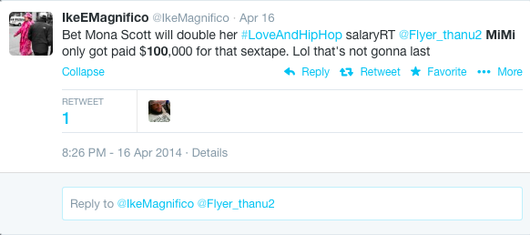 100K. As in 1/10th of a million bucks. Of course, when Twitter got ahold of the news, they had a field day. Mimi and Nikko can’t win.