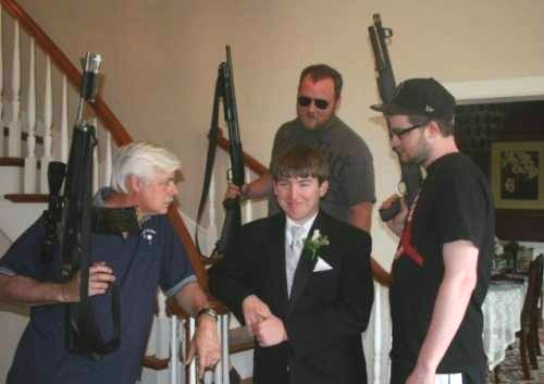 Armed Fathers Posing With Their Daughter's Prom Date