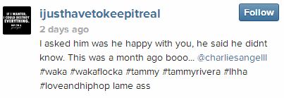 The jumpoff posted 4 pics of Waka in bed with her and addressed his boo Tammy Rivera in every single post: