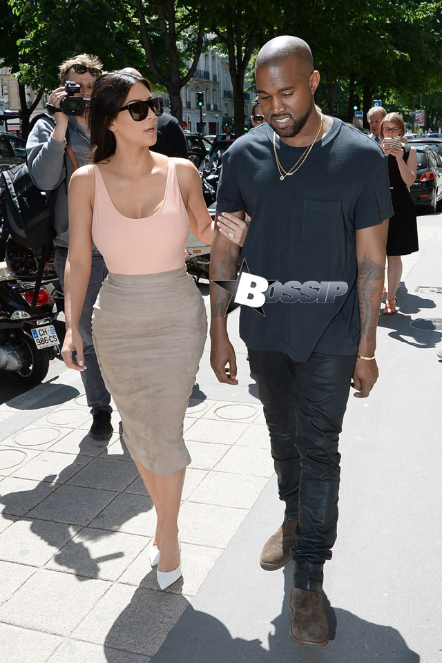 Kimmy Cakes was spotted flossing her assets around Paris while shopping with her soon to be hubby Kanye West. Talk about leaving very little to the imagination.