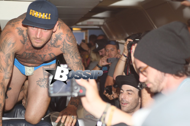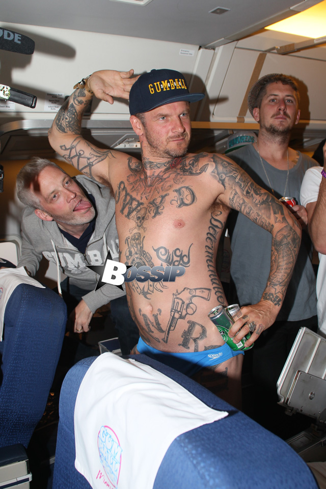 They were joined by what we can only presume are his weird friends… Bun B and Xzibit were also on the flight. Hit the flip for more photos of the happy couple and their fellow racers.