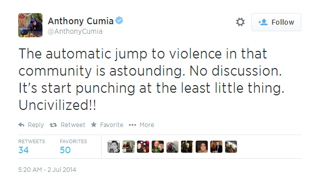 Cumia surprisingly argued that it was the woman who was being racist and that she called him a “white motherf—-r” before she attacked.