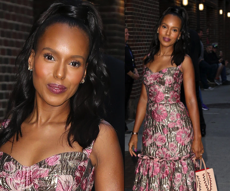 Seen on the scene… Kerry Washington Promotes “Scandal” Season 7 Kerry Washington was recently spotted out on her press tour looking pretty in pink. The actress visited Stephen Colbert Wednesday and glowed in a floral gown while rocking a classy ‘do. Kerry who’s promoting season 7 of “Scandal” that premieres tonight at 9, told Colbert […]